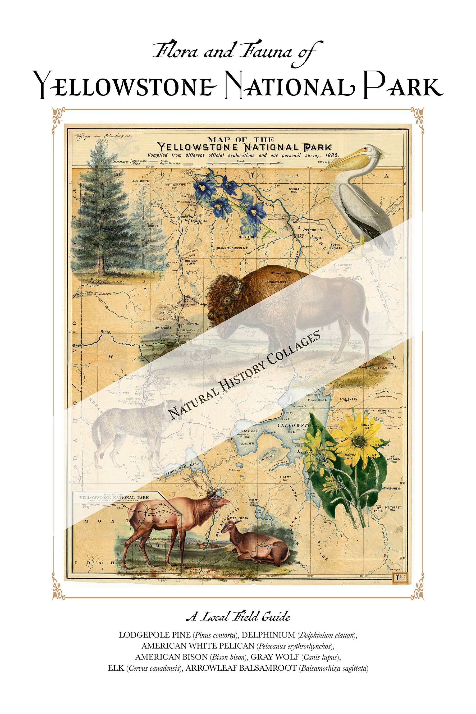 This digitally collaged field guide honors the world's first national park with species you might well encounter on a visit, from a majestic bison, to a solitary wolf, to a white pelican in Yellowstone Lake.